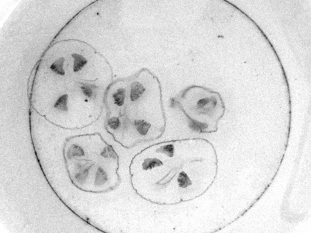 “我們?cè)谶_(dá)縣發(fā)現(xiàn)了大量桃花水母。”昨日上午,記者接到達(dá)州市水產(chǎn)局打來(lái)的熱線后迅速趕到現(xiàn)場(chǎng),只見(jiàn)工作人員用臉盆裝著的水母如五角硬幣大小,如飄落在水中的瓣瓣桃花,無(wú)頭無(wú)尾,晶瑩透亮,柔軟如綢,在水中一張一縮,上下飄蕩,悠然自得,就像空中緩緩升降的降落傘,在水池中顯得異常優(yōu)美。