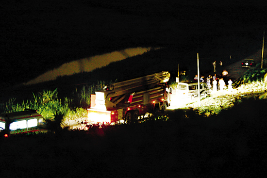 記者接報(bào)趕赴時(shí),發(fā)現(xiàn)警方在距現(xiàn)場(chǎng)一公里處便已開(kāi)始設(shè)卡封鎖,禁止無(wú)關(guān)人員進(jìn)入(見(jiàn)上圖,陳文筆、張雄高攝)。209倉(cāng)庫(kù)內(nèi)警燈閃爍,大批消防車出動(dòng)。由于是化學(xué)品失火,不能用水撲救,因此不斷有泥頭車從外面運(yùn)來(lái)干沙滅火。昨晚11時(shí)許還增加了一輛挖掘機(jī)進(jìn)場(chǎng)。待情況穩(wěn)定后,不斷有此前從倉(cāng)庫(kù)疏散出來(lái)的工人經(jīng)同意后重新進(jìn)入庫(kù)區(qū)。