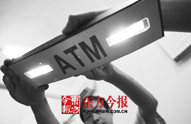 取款機(jī)是個(gè)內(nèi)陷型的窗口,周某等人在窗口內(nèi)側(cè)頂部,粘上了一個(gè)貼著“ATM”字樣的“發(fā)光燈”。這個(gè)“發(fā)光燈”是經(jīng)過特殊改造的,里面用一塊手機(jī)電池做電源,連接著兩個(gè)燈泡,核心部分則是一個(gè)MP4。取款人取款時(shí)的全過程于是被犯罪分子裝的“針孔攝像機(jī)”進(jìn)行了“實(shí)況錄像”。