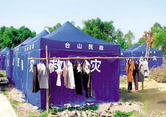 (廣東省)臺(tái)山市那扶鎮(zhèn)圍仔腳村、長邊村等多條村莊自從上月8日起陸續(xù)發(fā)生地陷,造成村民房屋倒塌,導(dǎo)致9條自然村245間民房出現(xiàn)不同程度的裂縫,63處地陷,地表裂縫19處,水井干涸。江門市及臺(tái)山市民政部門已及時(shí)讓受災(zāi)村民住進(jìn)救災(zāi)帳篷里!