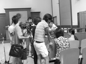 休庭時(shí),記者采訪受害女博士 陳善君攝