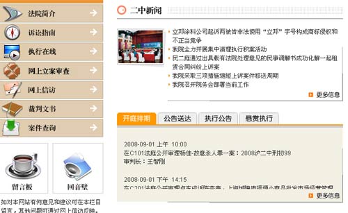 上海市第二中級人民法院網(wǎng)站截圖