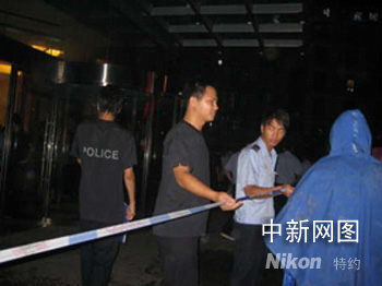 賓館外拉起了警戒線。