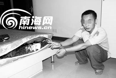 販毒老大吳忠(化名)指認藏匿在床墊下的毒品。