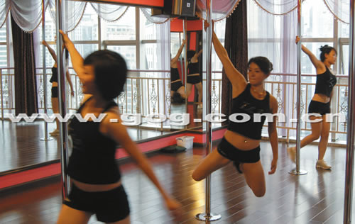 9月2日,夜幕降臨,位于貴陽(yáng)市噴水池某大廈的鋼管舞訓(xùn)練房?jī)?nèi),強(qiáng)勁的音樂(lè)響起,燈光閃爍,5名身穿超短裙的女青年在教練指導(dǎo)下,圍著一根鋼管上下左右的翻轉(zhuǎn),她們跳的是——鋼管舞。