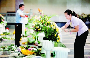 昨天上午,在廣州殯儀館銀河園的白云廳里,來自廣州市殯葬一線的79名職工,分別參加了“挽聯(lián)插花”、“業(yè)務(wù)洽談”、“治喪禮儀”三個(gè)專業(yè)的職業(yè)技能鑒定競(jìng)賽。來自國(guó)家民政部和廣州市民政局的考官們,全程見證了這場(chǎng)特殊的考試。