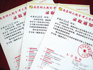 昨天上午10點(diǎn)多,淮安市吳承恩中學(xué)年過五旬的副校長(zhǎng)李步春,接連收到了學(xué)校收發(fā)室送來的三封快件,竟是南京同一所大學(xué)寄來同樣內(nèi)容的3封大學(xué)錄取通知書。