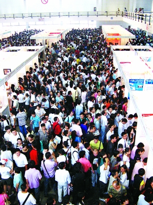 國(guó)展的2、3、4號(hào)展廳中人頭攢動(dòng),中國(guó)礦業(yè)大學(xué)行政管理專業(yè)大四學(xué)生王琛手拿一個(gè)文件夾在眾多展臺(tái)中尋找適合自己的崗位。王琛說(shuō),夾子中有志愿者證、一大摞簡(jiǎn)歷和奧運(yùn)服務(wù)心得,其中還夾了一張她與“新飛人”博爾特的合影。奧運(yùn)期間,王琛作為工人體育場(chǎng)的志愿者出色地完成了服務(wù)奧運(yùn)的任務(wù),奧運(yùn)結(jié)束后,已經(jīng)大四的王琛開(kāi)始謀劃自己的出路。