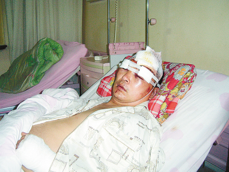“就是那幫晚上在村里亂倒建筑垃圾的家伙!他們沖上來(lái)認(rèn)準(zhǔn)了我就打,還惡狠狠地撂話(huà)說(shuō)要制服我這個(gè)不怕他們的人!”昨晚,正在醫(yī)院接受治療的魚(yú)化寨二府莊村治保主任項(xiàng)建宏身上纏滿(mǎn)了繃帶,他睜著青腫的雙眼,向記者訴說(shuō)不久前發(fā)生的那一幕時(shí)仍是異常氣憤。