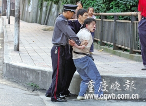 昨天清晨,一男子潛入南岸區(qū)南坪麗華酒店5樓洗腳城盜得一部手機(jī)后,被酒店保安江海濤追上。小偷掏出幾張百元大鈔哀求江海濤放行,被拒后翻臉抽出刀子威脅。江海濤徒手與毛賊展開(kāi)搏斗,在趕來(lái)的同事的幫助下,將毛賊制服并扭送派出所(如圖)。