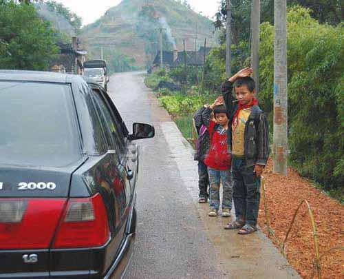 《貴州都市報》記者日前驅(qū)車路過黃平縣浪洞鄉(xiāng)松洞小學,3名在路上行走的小學生見到車輛立即停下了腳步,并且雙腳并攏,行了一個莊嚴的少先隊隊禮;10分鐘后,記者一行又遇見了3名中學生,他們見到車輛也主動停下腳步敬禮,這些學生說“入學的時候?qū)W校就要求我們這樣做,現(xiàn)在都成習慣了”。