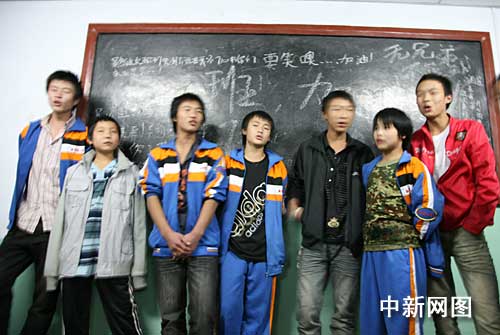 映秀漩口中學(xué)高二二班的學(xué)生在合唱