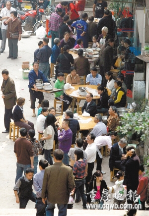 昨上午,記者驅(qū)車趕往珍溪鎮(zhèn),在黃旗附近因修路堵車,從采訪車前后的轎車上,分別下來七八位乘客,他們彼此熟悉,其中有官員有商人,都是從新妙和涪陵城區(qū)趕往珍溪為秦鎮(zhèn)長的父親祝壽的。