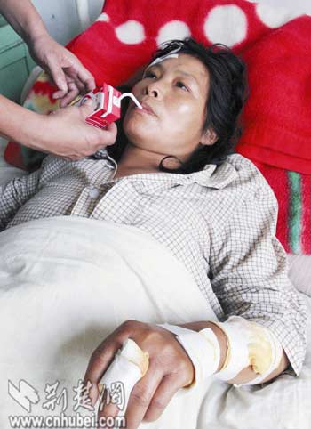 昨日,記者在新洲區(qū)陽(yáng)邏衛(wèi)生院見(jiàn)到,傷者魏秀林(女,44歲)的頭部、胸腹部、背部和四肢有十余處傷口,其中最長(zhǎng)的達(dá)15厘米。