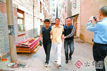 上午8點(diǎn)49分,昆明市公安局五華分局馬村派出所接到市局110指令,下馬村301號(hào)4樓,一男子劫持一女子欲將其殺害。民警迅速趕到現(xiàn)場(chǎng),見男子反鎖大門,拒絕開門的同時(shí),情緒比較激動(dòng):“我就是要?dú)⒘诉@個(gè)賤人,你們不要管我!”他還嚷著如果民警進(jìn)屋,就要?dú)⑺缿阎信。民警通過(guò)出租房門頭的窗戶往里看,只見一名戴眼鏡的男子一手勒住一女子的脖子,另一只手拿著一把長(zhǎng)20多厘米的菜刀架在女子脖子上。女子面色慘白,全身瑟瑟發(fā)抖,一臉恐懼。