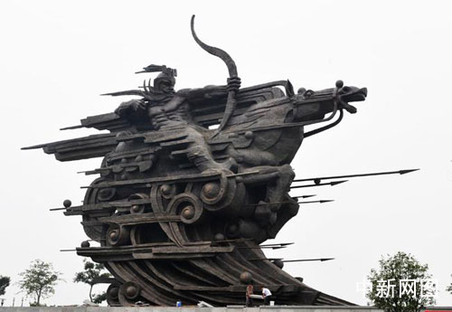 中新網(wǎng)杭州10月23日電(記者 龔讀法 實習生 王磊 通訊員 濱宣)日前,歷時兩年的巨型雕塑《錢王射潮》在浙江省杭州市濱江公園正式揭幕。這尊雕塑的是由中國工藝美術(shù)大師韓美林設(shè)計的,雕塑高29.6米,寬48米,厚15米,全部采用性能優(yōu)良的錫青銅鑄造而成,總重量達300余噸。