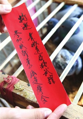 原本發(fā)一條短信或是打一個(gè)電話,一分鐘就能搞定的事情。為何這么大費(fèi)周章,要用飛鴿傳書的形式呢?何偉琪介紹,古人就是利用烽火狼煙、繩結(jié)、信鴿等方式來遞信息的,而飛鴿傳書更是古代武林界重要的傳統(tǒng)儀式。在通信日益發(fā)達(dá)的今天,飛鴿傳書也只是對“傳統(tǒng)”的演繹。何偉琪說:“如果效果不錯(cuò),四川武林界將把這種傳統(tǒng)通信方式繼續(xù)沿用下去!