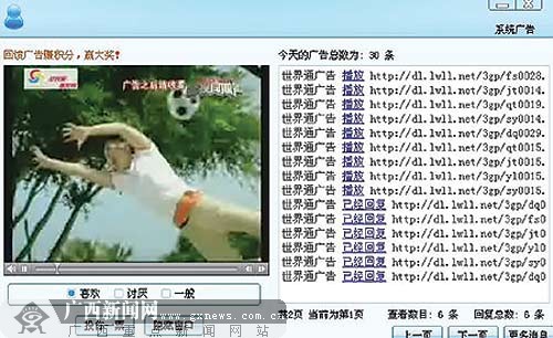 記者通過QQ向河南鄭州的一名叫“歐陽(yáng)星空”的資深“世界通”代理商咨詢,他稱“世界通”與各大公司都簽有協(xié)定,才獲準(zhǔn)播出相關(guān)公司的廣告。“世界通”的廣告也宣稱,“我們給用戶的獎(jiǎng)勵(lì)回饋是由發(fā)布廣告和信息的企業(yè)支付的”。