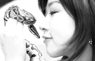 “呀!那個女娃兒和一條花蛇親嘴!”昨日下午,一名年輕女子手持一條金、黑相間,一米余長的蛇出現(xiàn)在南坪福利社附近,引起市民圍觀。這時,女子當眾與愛蛇接吻,驚嚇住在場群眾!