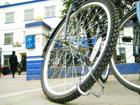 “派出所門前手銬鎖自行車”