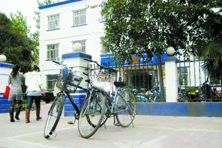 昨日下午6時許,按照網(wǎng)友提供的圖片,記者找到了鄭州市北林路派出所,此時門口已經(jīng)沒有用手銬鎖的自行車了。