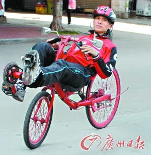 坐著騎的自行車滿街都是,躺著騎的自行車你見過嗎?家住廣州芳村、在番禺大石鎮(zhèn)上班的洪偉勝就有一輛這樣的車。