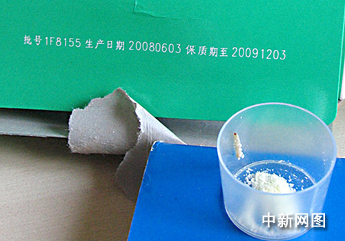 10月14日早晨,王女士給醒來的寶寶沖泡奶粉。她拆開了一包400克裝的“金裝多美滋學(xué)1加”奶粉,朦朧中看到一個(gè)東西在蠕動(dòng)。挖出來一看,是條1.5厘米長的粉白色肉蟲。
