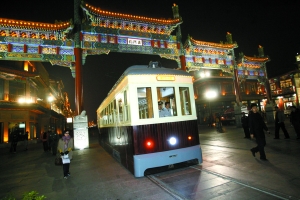 昨晚,“鐺鐺”聲音再次在前門大街響起,初降的夜幕中鐺鐺車緩緩駛出。這是司機考取“駕照”后首次試運行。