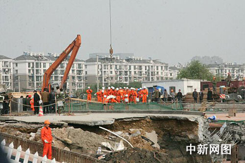 據(jù)了解,目前地鐵坍塌事故現(xiàn)場已經(jīng)有60余臺(tái)的設(shè)備正在全力進(jìn)行搶修,根據(jù)現(xiàn)場情況進(jìn)行排水。現(xiàn)場西側(cè)的卸載已經(jīng)完成,基坑?xùn)|側(cè)的平房已經(jīng)拆除。第一幢三層樓房現(xiàn)在也正在拆除中,F(xiàn)場東側(cè)西南段南段已控方卸載3000立方米。北段控方已卸載2000立方米,占東側(cè)總卸載15000立方米中的33.3%。已經(jīng)吊起的地面鋼支撐載110噸,基坑內(nèi)鋼支撐載已調(diào)運(yùn)90噸,占總量480噸的18.75%;觾(nèi)清淤已經(jīng)達(dá)2000平方米。