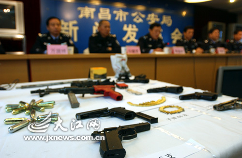11月17日,南昌市公安局舉行新聞發(fā)布會(huì),通報(bào)破獲的販賣毒品、槍支案