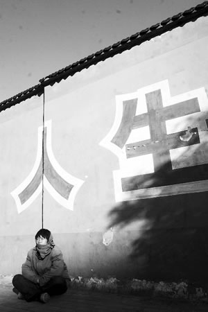 昨日,她依舊安靜地跪在塔灣路上,旁邊放著破舊的三輪車和一個爐子。