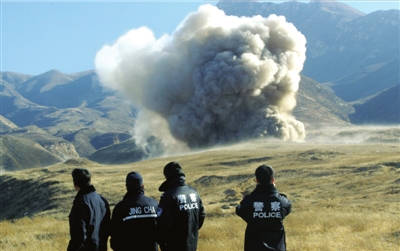昨天下午1時(shí)整,一聲巨響過(guò)后,一片蘑菇云騰起于河北懷來(lái)的群山中。當(dāng)天,北京警方在這個(gè)專(zhuān)業(yè)銷(xiāo)毀場(chǎng)地集中銷(xiāo)毀1000余公斤各類(lèi)炸藥和216枚雷管,這是北京警方銷(xiāo)毀品種最多、危險(xiǎn)系數(shù)最大的一次集中銷(xiāo)毀爆炸物品行動(dòng)。銷(xiāo)毀的有梯恩梯、黑索金、奧克托金,以及部分軍用猛炸藥等11個(gè)品種,主要為北京理工大學(xué)實(shí)驗(yàn)室廢棄不用的爆炸物品。此次銷(xiāo)毀后,本市(北京)城區(qū)內(nèi)將不再有大型爆炸物品庫(kù)房,不會(huì)再集中儲(chǔ)存爆炸物品。
