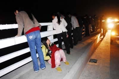 事情發(fā)生在22日晚10時(shí)許。記者當(dāng)晚趕到后渚大橋中段時(shí),橋欄邊站滿了圍觀的人,后渚邊防所、洛陽(yáng)派出所以及豐澤消防大隊(duì)都趕到了現(xiàn)場(chǎng)。所有人都焦急地看著江面,此時(shí)正值退潮,水面距橋面約有十幾米,漆黑的水面上,完全找不到任何落水者的蹤跡。