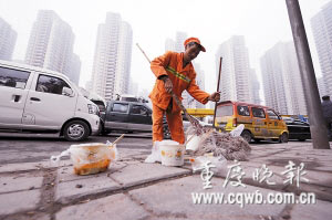 “他們吃了就往地上甩,從這里到轉(zhuǎn)盤(pán),我掃一趟約1小時(shí)!弊虺8時(shí)許,北環(huán)收費(fèi)站外清潔工彭昌德說(shuō)。他說(shuō)的這段路不到200米,他凌晨5時(shí)就前來(lái)掃街,來(lái)回清掃了8趟,每趟清掃垃圾超過(guò)15簸箕,滿(mǎn)滿(mǎn)1清掃車(chē)。