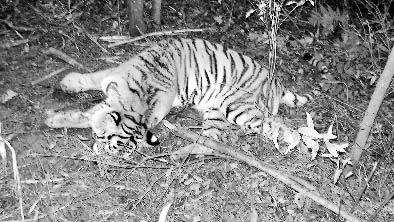 9月8日上午,黑龍江省東方紅林業(yè)局居民到東林林場(chǎng)撿山核桃,在位于林場(chǎng)1林班的地方發(fā)現(xiàn)一具東北虎尸體。接到報(bào)案,林區(qū)公安局立即趕赴現(xiàn)場(chǎng)。經(jīng)勘查發(fā)現(xiàn),被害的老虎是一只野生成年雌虎,身長(zhǎng)1.55米,加上尾部長(zhǎng)2.38米,肩高0.54米,體重97公斤。在它前進(jìn)的方向只發(fā)現(xiàn)了野豬的足跡,說明它在死前仍然在追野豬。地上的虎毛和虎爪的痕跡清晰可見,顯然它在死前經(jīng)過一陣掙扎。從勒在虎頸部的鋼絲套可以斷定,這個(gè)鋼絲套就是導(dǎo)致其死亡的直接原因。經(jīng)鑒定,死去的老虎屬東北虎亞種,系鋼絲套勒頸部窒息死亡。
