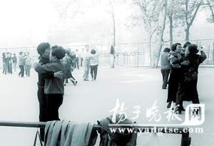 很巧的是,南京大學(xué)教攝影的謝白老師寄給本報的老照片里,也有一組關(guān)于“交際舞”的。那是在80年代后期90年代初,彼時“交際舞”早已不是青年男女用來交友、展示青春釋放活力的時髦玩意,越來越多的中老年人開始喜歡上了這種能夠舒緩身心愉悅性情的活動,于是“交際舞”開始演變成一種全民健身式的運動項目。在此背景下,上個世紀80年代末的幾個清晨,謝老師在南京的和平廣場、南大操場等地,留下了許多中老年男女“聞雞起舞”的愜意身影。(張磊)