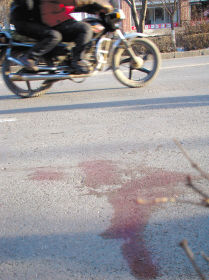 車禍現(xiàn)場地上還殘留著血跡