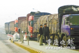 上周六凌晨6時許,5輛滿載電纜的貨車駛到市高發(fā)司中渝營運分公司南川收費站。第1輛車的劉姓司機告訴收費員,貨車屬運輸救災物資車隊,這次是把汶川災區(qū)的一批規(guī)格的電纜,退回南川生產(chǎn)廠。言畢,劉掏出蓋有我市民政、交委、市公安局和市政委鮮章的通行證——重慶市救災物資車輛通行證。