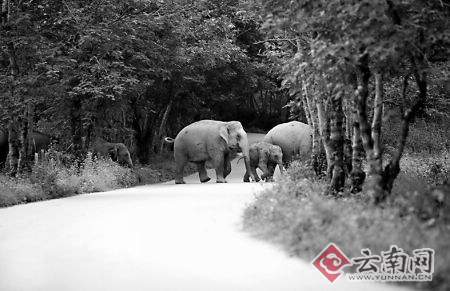 象群大搖大擺過馬路