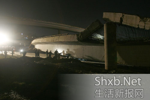 立交垮塌現(xiàn)場圖。來源:生活新報網(wǎng) 記者 張訓武攝