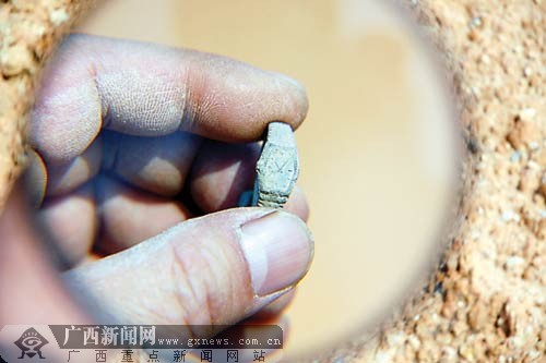 在上思縣前段時(shí)間出土的“三合土”巨棺的墓坑邊,居然出現(xiàn)一只“手表”。12月11日,相關(guān)考古專家和中央電視臺(tái)記者來(lái)到巨棺出土現(xiàn)場(chǎng)考察時(shí),發(fā)現(xiàn)了這樣令人驚訝的事情。