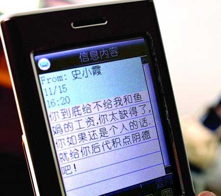 為討半月工資打工妹發(fā)短信辱罵