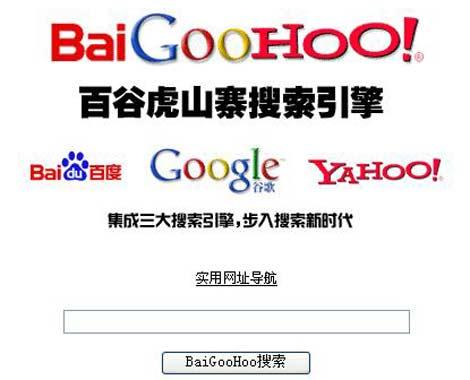 日前,一款名為“百谷虎”的搜索引擎引起了不少網(wǎng)友的關(guān)注,這個(gè)搜索引擎一眼看去和普通搜索引擎區(qū)別不大,但仔細(xì)一看,百度、谷歌、雅虎這三大搜索引擎的LOGO被整合成了“baigoohoo”,搜素框的上方還有該引擎的廣告語(yǔ)“集成三大搜索引擎,步入搜索新時(shí)代”。 (11月20日《信息時(shí)報(bào)》)