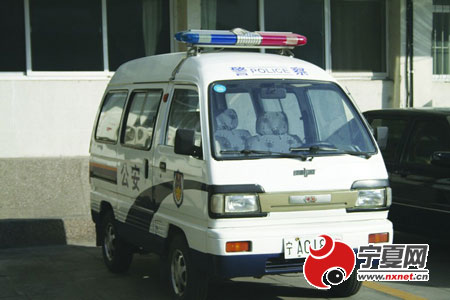 城管執(zhí)法人員使用的警車停放在銀川市城管局辦公樓下。