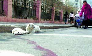 同伴遇車禍,先是在滾滾車流中舍命將其拖至路邊,然后伏在其身邊守望,親吻,試圖喚醒遇難的同伴……這一幕的主角不是人,而是一只普普通通的白色小京巴!3月1日下午1時許,青島大堯一路與逍遙二路路口上演了這感人至深的一幕,很多圍觀的市民唏噓不已,有的市民甚至當場流下了同情的淚水。