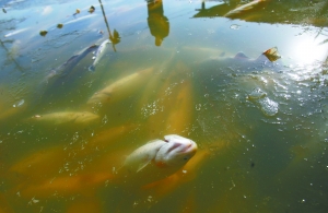 “魚不可能缺氧死亡的,我懷疑有人在下半夜投毒,但也不好說誰干的!崩钕壬f,死去的這些魚每條約重1公斤,批發(fā)價每斤10多元,這一下子就損失了好幾萬元,警察昨日勘查現(xiàn)場后,已從魚池里取走幾條死魚回去做化驗。