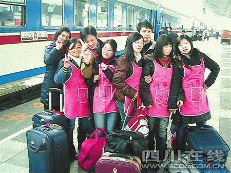隨著春節(jié)臨近,北京家政市場保姆荒的情況也越來越嚴重。昨日上午11時許,川妹子家政公司組織的15名進京家政人員登上了開往北京的列車。保姆中有8人是大學生,其中7人是家政專業(yè)的大學畢業(yè)生,1人是因新近公司倒閉而失業(yè)的白領。明日,他們將走進北京市民的家庭,從事高端家政服務,年薪在2萬元左右。