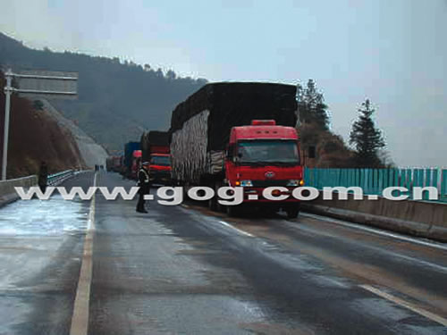 由于我省(貴州)貴遵、清黃、貴新、玉凱、貴開、水黃等高速(高等級)公路出現(xiàn)凝凍,為確保過往車輛安全,昨日凌晨至中午,這些公路相繼實行交通管制。直到下午14時,隨著氣溫回升,各條管制路段先后恢復正常交通秩序。