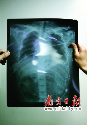 ×光片顯示周雙明的體內(nèi)約有小彈丸百余顆。楊曦?cái)z