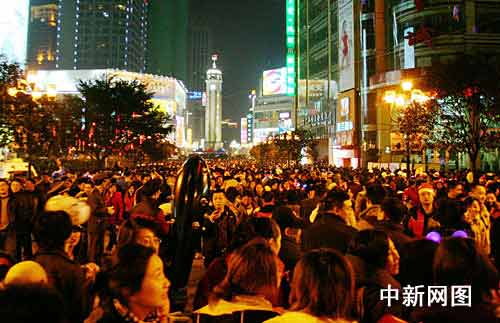 據(jù)稱(chēng),從下午4時(shí)起,重慶交通部門(mén)就派出大量交警駐守通向解放碑的主要路口疏導(dǎo)交通;打扮成圣誕老人的商販們?cè)缭缯紦?jù)通往解放碑廣場(chǎng)的各條主干道,吆喝著售賣(mài)充氣棒、圣誕帽、熒光棒等圣誕狂歡道具。